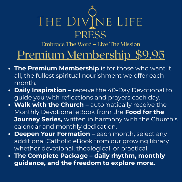 Premium Membership gives you everything we offer, daily consistency, monthly guidance, and freedom to explore more, making it the best value for anyone serious about living their faith in rhythm with the Church.